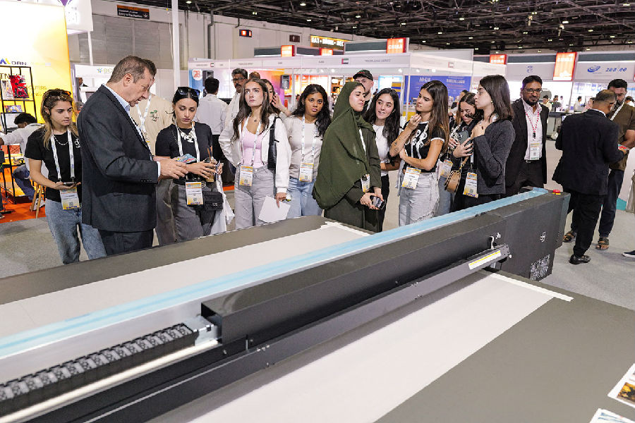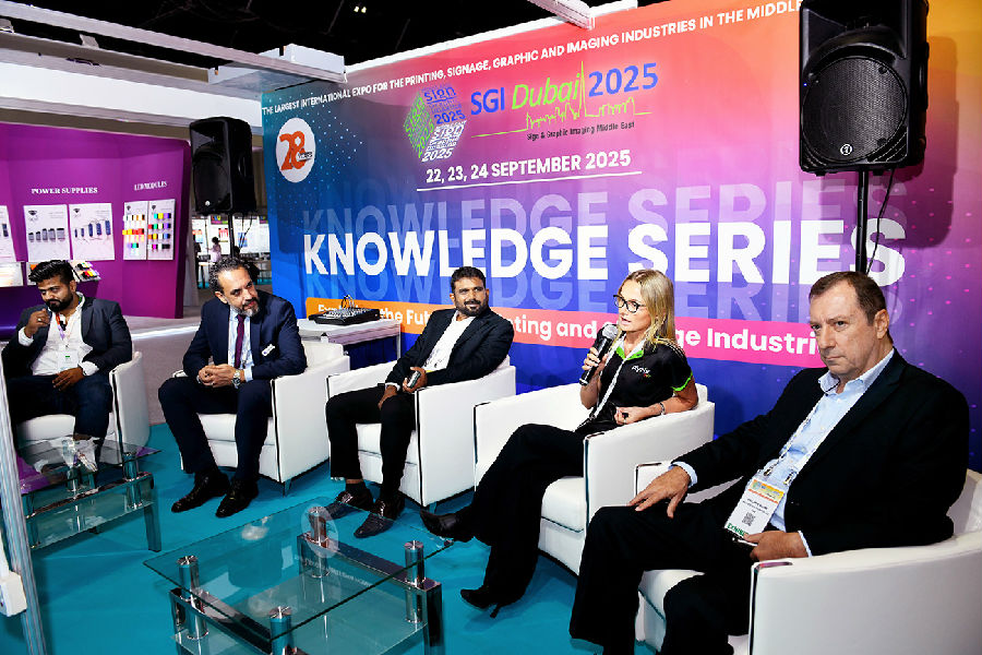 本届知识系列特邀五位行业领袖展开深度对话:Al Rabeta市场总监Khaled El-Sheikh先生、Heliozid Oce董事总经理Philippe Husni先生、XESS集团创始人兼首席执行官Kethiswaram Singaravel先生、 哈克普拉斯创始人兼总经理贾伊什·巴德拉尼先生;以及普莱里克斯客户关系经理夏洛特·科格女士。迪拜美国大学师生团在教授陪同下参与活动,为会议注入浓厚学术氛围,亲身体验印刷与标识行业变革浪潮。与会专家强调,人工智能(AI)不应被恐惧,而应作为变革催化剂加以拥抱。无论在印刷、礼品、纺织、物流还是广告物料领域,AI已证明是提升创造力、效率与竞争力的强大工具。