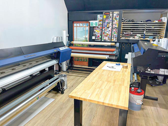 为保障生产效率,他们配备了两台罗兰DG TrueVIS大幅面喷墨设备——一台1625.6毫米(64英寸)打印切割一体机和一台同尺寸纯打印机,以及一台CAMM-1 GR2-640 64英寸大幅面切割机。“初次购入罗兰DG打印切割机时我对设备知之甚少,但其打印品质令人惊叹,”梅里韦瑟表示,“更重要的是所有设备均标配RIP(光栅图像处理)软件,这无疑是巨大优势。”