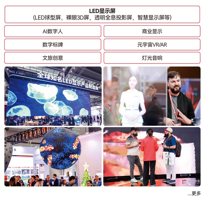 作为 SIGN CHINA 的姊妹展,LED CHINA深圳国际LED智显春交会被誉为‘全球LED显示屏应用“风向标”盛会’。自 2019 年率先布局深圳以来,展会每年吸引超 100 个国家及地区的海外买家到场采购。展会以 LED 显示屏为核心载体,集中展陈裸眼 3D、AI 数字人、全息投影透明屏、数字标牌、商业显示、元宇宙 AR/VR 等前沿产品及技术,为广告标识行业的数字化转型注入强劲动能。