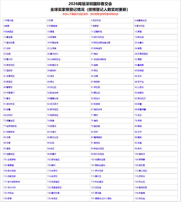 截至1月21日,已有132 国买家预登记报名参观,买家数据实时刷新!
